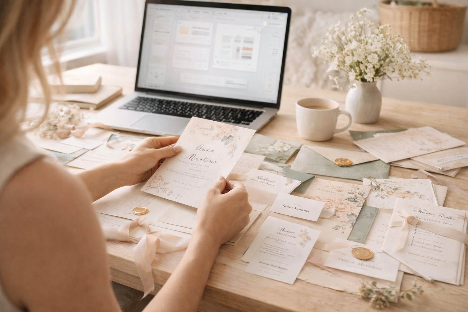 No ielūguma līdz galda kartītēm — dizains rada noskaņu vēl pirms pasākums sākas.